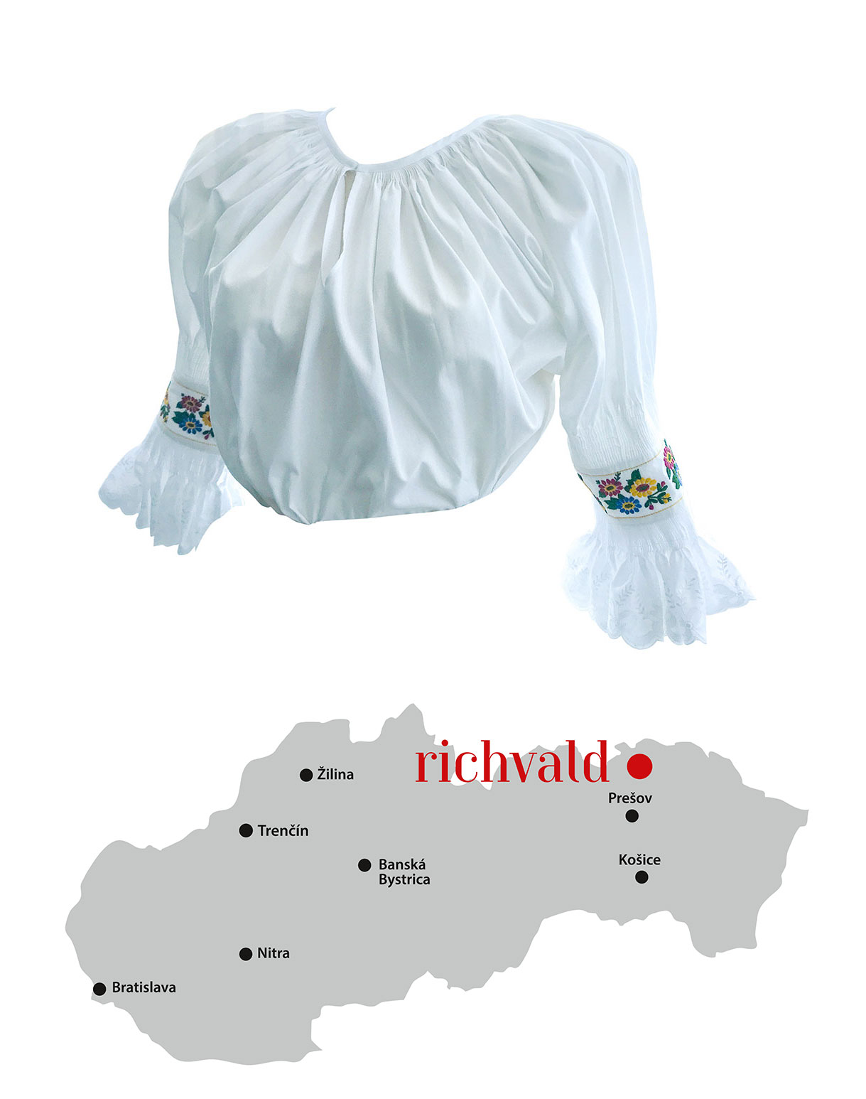 Elegantné šaty inšpirované motívmi z richvaldského kroja nechajú krásne vyniknúť lesk swarovskeho kamienkov, ktoré sú ručne aplikované na rukávoch. Rafinovaný vrchný diel je z padavého tylu, vďaka ktorému zakryjete všetko, čo zakryť potrebujete. Tento model sa hodí ako na spoločenskú udalosť, tak aj do práce či do divadla.